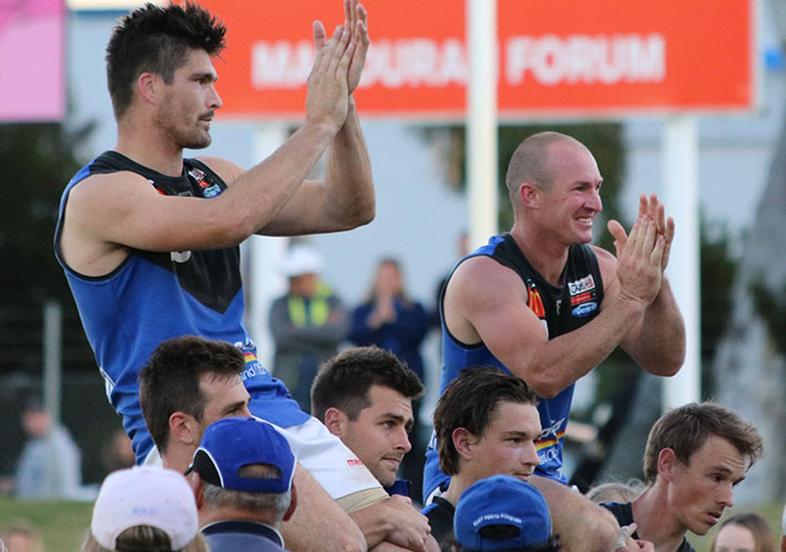 The skies were blue at Rushton Park too but a stiff breeze made things difficult, especially in the first half. One of the many issues for Fremantle in the AFL this year was a lack of marking power – their were 17 Dockers in the Peel line-up on Sunday and the marking of Michael Apeness in attack, Alex Silvagni and Sam Collins in defence and Zac Clarke around the ground was one of the big advantages Thunder had over East Perth. The ruck contest was also significant with East Perth’s Paul Johnson, in his last game, on top early but he lacked support and Clarke and Jack Hannath gradually took over. The Royals did well into the breeze in the third quarter kicking two goals to Peel’s one to reduce the margin to 22 points at the last break and the game looked to be in the balance. The breeze wasn’t so significant in the last quarter but East Perth’s run had finished anyway – Thunder scored 4.3 (27) to nothing to the delight of the success starved home crowd.