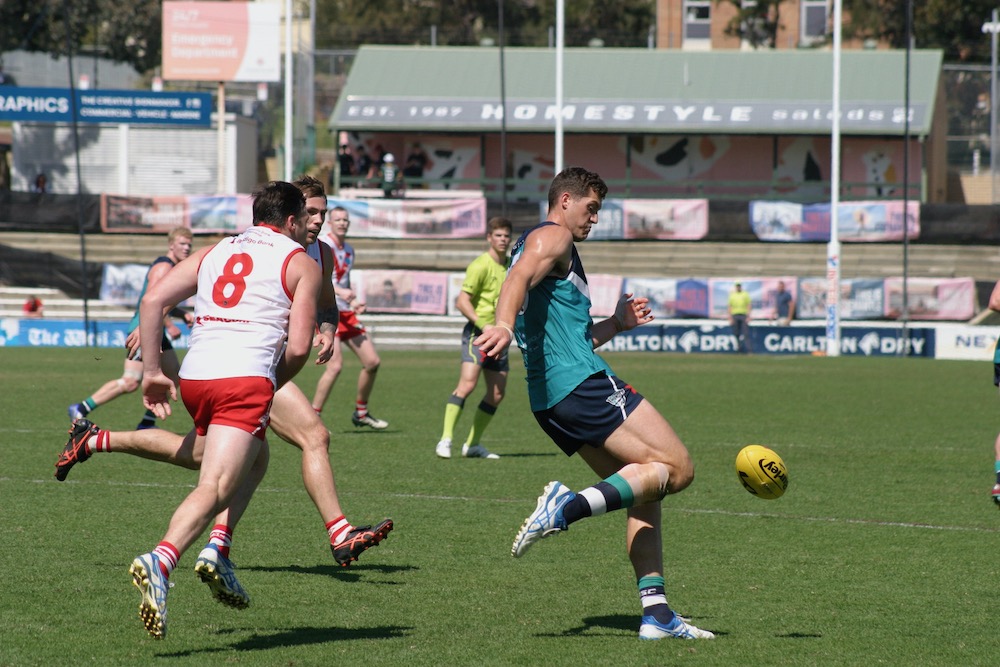 It wasn’t long into the last quarter before East Fremantle had regained control. Milan Murdock got things going early, fought off taggers and again had a huge influence for the Sharks. Cam Eardley gets a lot of easy kicks in defence but also wins one-on-ones and is strong in the air – he is in career-best form. Kyle Baskerville was good again, Matthew Jupp halted many attacks, former Tiger Jeremy Goddard was important in the ruck and Jonathon Marsh and Alex Montauban each kicked three goals. One of Montauban’s would have been one of the worst kicks ever to make it through the big sticks.