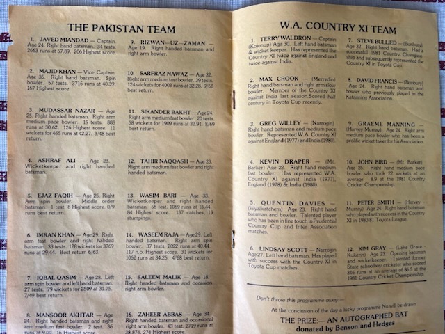 Thanks to Craig Cox we have the last remaining relic of a fading memory of the day Pakistan left Wyalkatchem abandoned at the altar of cricket legend. The “budget” for the day, complete with the Benson & Hedges logo.