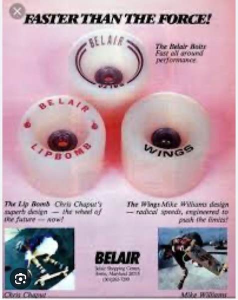 We read Popular Mechanics magazine and made the designs for homemade skateboards with metal roller skate wheels. Hell on wheels. Until the arrival of the Belair Lipbomb – Faster Than Force polyurethane wheel with bearings!
